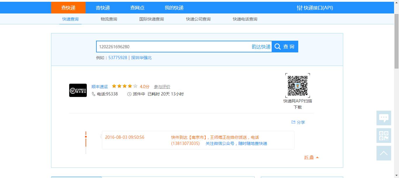 您好!快遞網的物流跟蹤數據均來自各快遞公司的官網實時數據。如需催件,建議您電聯順豐客服:95338,謝謝!