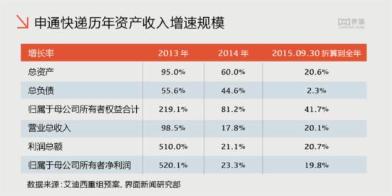 除了此前說(shuō)到的快遞行業(yè)增速下滑,從“三通”中申通速遞的收入、利潤(rùn)增速規(guī)模中也可以驗(yàn)證這一事實(shí)。從艾迪西披露的重大資產(chǎn)重組預(yù)案中可以看到,申通的收入以及利潤(rùn)規(guī)模增速大幅放緩,特別是利潤(rùn)規(guī)模的增速自2014年以來(lái)快速下滑。除去利潤(rùn)的大幅萎縮,加盟的風(fēng)險(xiǎn)也日益嚴(yán)重。分公司拖欠工資造成快遞堆積如山的新聞報(bào)道層出不窮。